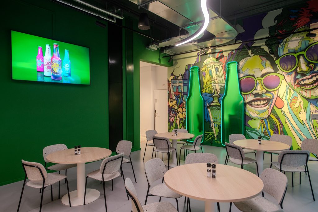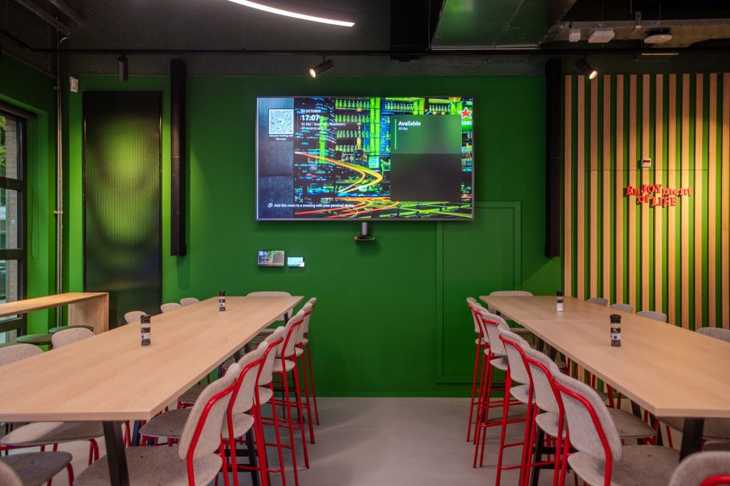 Roderick Rademakers, IT Manager Corporate Office HEINEKEN: ‘In this meeting room, we also chose a large Absen LED wall. The screen is used for narrowcasting and for presentations. We chose this screen because of its brightness and colourfastness. The content must be sharp and clear in the room throughout the day, regardless of the light.