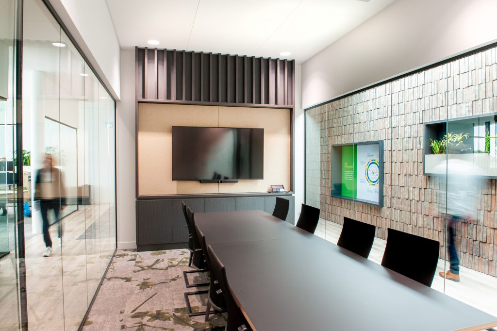 • 55”, 75” en 98” Samsung LED displays in meeting en trainingsruimtes, pantries, kantine, fitness ruimte