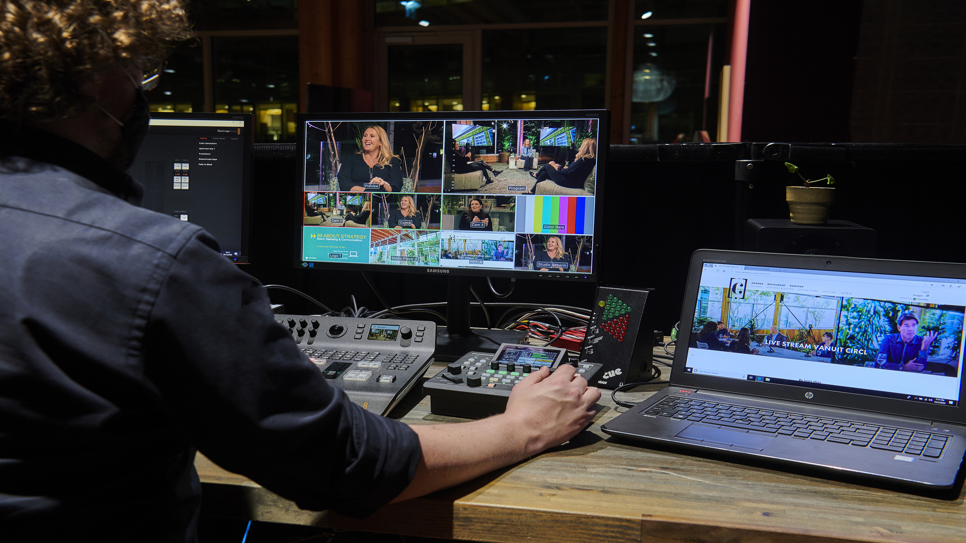The basic setting with a single camera is extremely suitable for “one touch” operation. With which the user starts the broadcast with one push of a button from a touch panel. A short user training after installation ensures that the operation by the users themselves runs smoothly.In case of a broadcast with more guests in the studio, we can expand your set for this occasion with temporary equipment that we connect to your basic installation. The installed infrastructure has already been set up for this, so that an expansion on site can be realized quickly. This way you always have the most ideal set at home.
